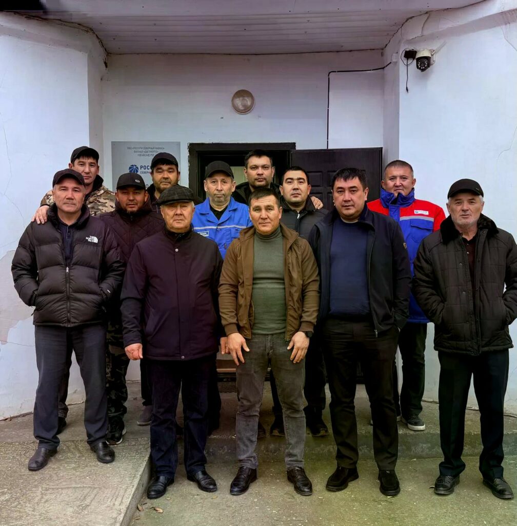 Суьвретте: СВО ортакшысы Камиль Атангулов (ортада) оьз ис йолдаслары, Ногай РЭС куллыкшыларынынъ бир кесеги мен.