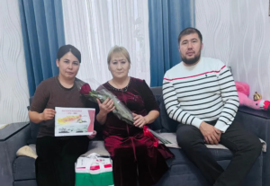 Авыл поселениесининъ яслар ислери, спорт эм маданият бойынша специалисти Асанбий Биякаев эм Калинин авылынынъ китапханасынынъ заведующийи Кумусхан Акбердиева ветераннынъ тул хатынында конакта болдылар. Олар Сагиндиковлардынъ аьлейине коьп ийги соьзлер айтып, савкатлар тапшырдылар. Энъ де маьнелиси, буьгуьнлерде афган согысынынъ ветеранынынъ увылы, сол заманда атасындай болып, Аталыкты саклавда туры, ол согыс спецоперациясында алдышылыкта явга карсы турады, Россиядынъ кызыксынувларын коршалайды. Сол тувыл ма несилден несилге коьширилетаган йигитлик.