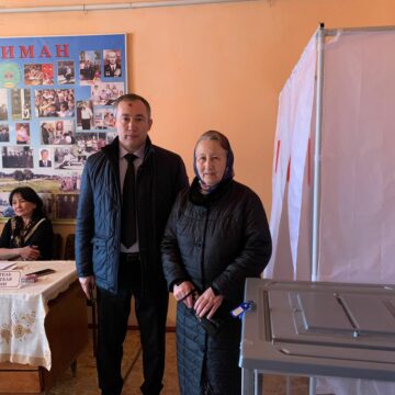Глава Ногайского района РД Джамалутдин Эсиргепов вместе со своей мамой Алимет Эсиргеповой в рамках акции «Всей семьей на выборы» пошел на выборы президента Российской Федерации на избирательный участок № 1192, который расположен в здании администрации МО СП «сельсовет Коктюбинский» в с.Нариман.
