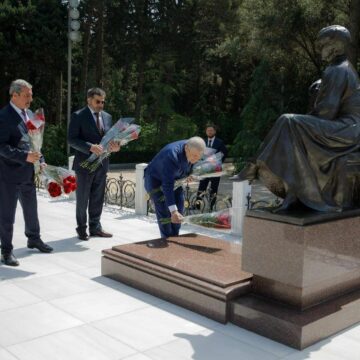 В рамках визита дагестанской делегации в Баку, возглавляемой Главой Республики Дагестан Ризваном Газимагомедовым, состоялась церемония возложения цветов на Аллее Почетного Захоронения.
