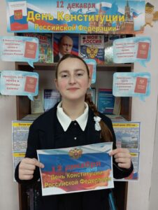 12 декабря в библиотеках Кизлярского района прошли мероприятия, посвященные Дню Конституции Российской Федерации. Основная цель данных мероприятий заключалась в углублении знаний читателей о конституционных основах государственного устройства, формировании уважительного отношения к основному закону страны и воспитании патриотических чувств.