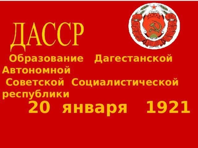 Принятию высшими органами государственной власти РСФСР Декрета об образовании Дагестанской АССР послужило провозглашение автономии Дагестана на Чрезвычайном съезде народов Дагестана 13 ноября 1920 года.