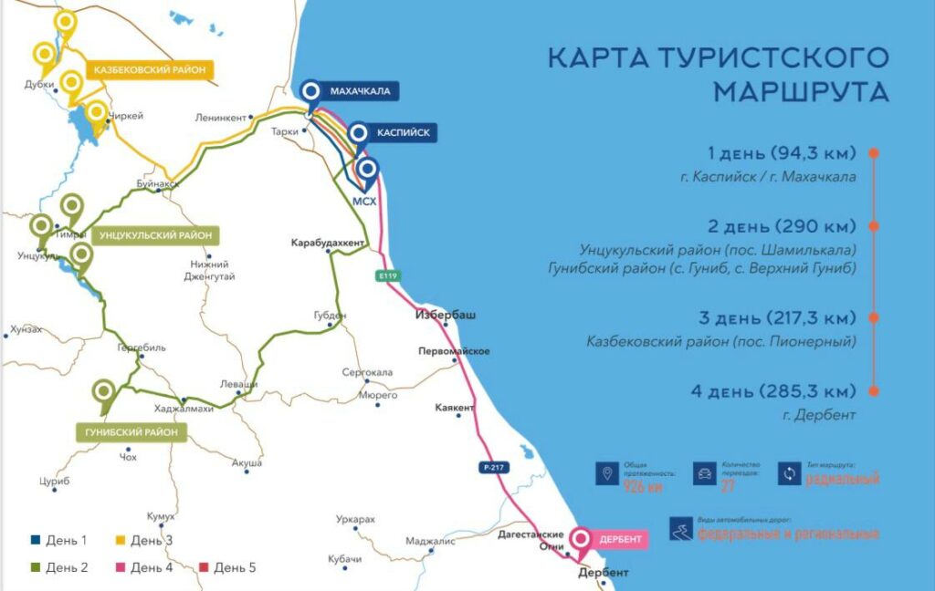 Исполнительный директор ООО «Даг Тур» Назим Гасанбеков рассказал о текущих результатах и планах развития национального маршрута. Маршрут, разработанный Минтуризмом республики совместно с ведущими туроператорами, объединяет пять ключевых экскурсионных программ и охватывает главные достопримечательности региона — от Сулакского каньона до древней цитадели в Дербенте. Вдоль всего пути уже сформирована качественная базовая инфраструктура.